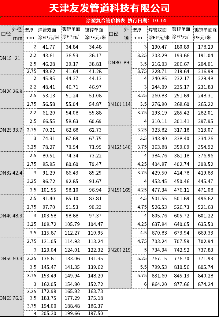 涂塑复合钢管是一种结合了钢管与塑料涂层的管材,具有优异的防腐、耐磨、耐压、耐高温等性能,被广泛应用于多个领域